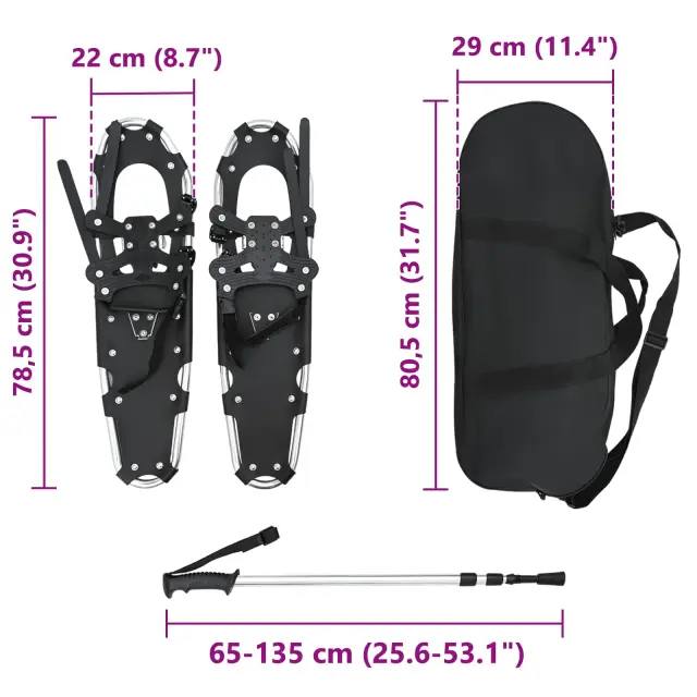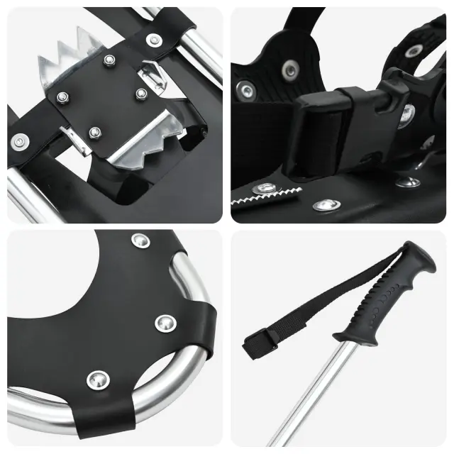 • Nastavljiva dolžina Prilagodite te snežnike svojemu koraku in udobju z enostavno nastavljivo mehaniko dolžine. Osvežijo se lahko od kompaktnega shranjevanja do polne širine. Ta funkcija dodaja plast personalizacije in zagotavlja večje zadovoljstvo na vsaki zimski pustolovščini.