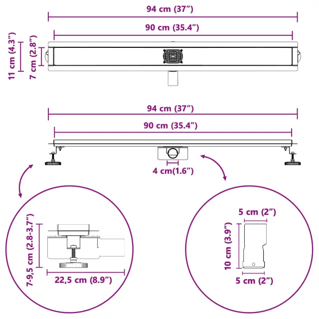 Ta moderni odtok za tuš je narejen za popolno usklajenost s sodobnim slogom in ponuja enostavno funkcionalnost. Zasnovan za uporabo v kopalnicah, ima čist minimalističen videz, ki se brez težav vklopi v moderne notranjosti. Njegova enostavna, a elegantna zasnova omogoča piko na i majhnim in velikim kopalnicam ter ustvarja prijetno vzdušje.