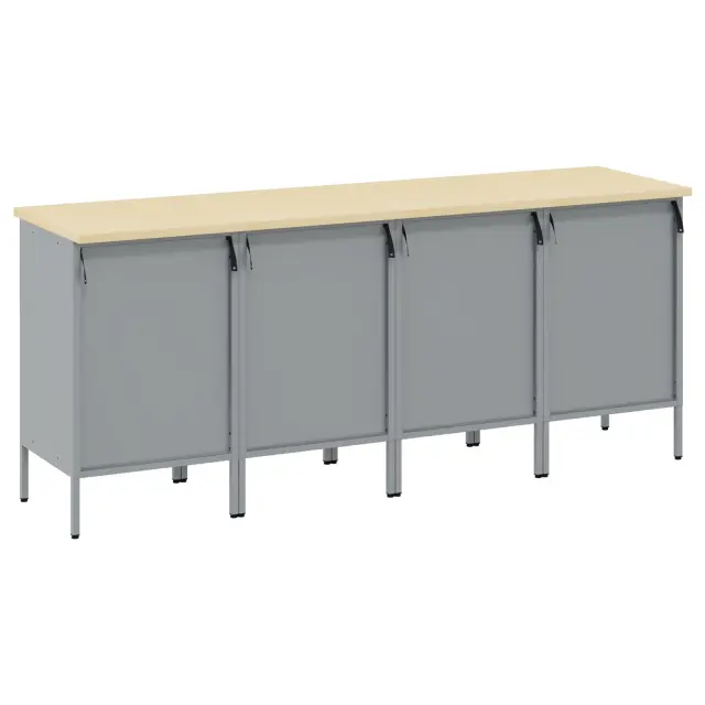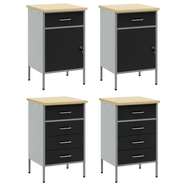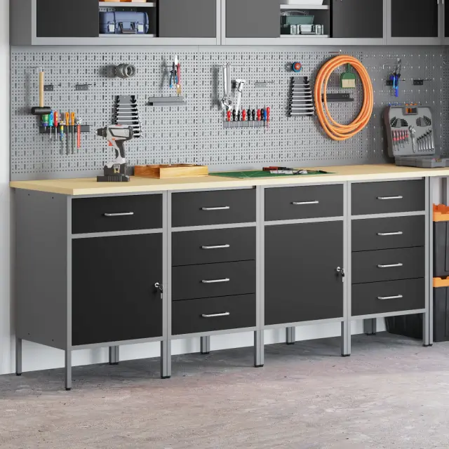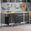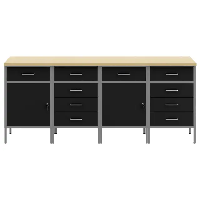 Ta komplet delovnih omar v industrijskem slogu združuje funkcionalnost in stil, kar ga naredi idealnega za delavnice, garaže ali utility room-e. Ima pameten črno-siv izgled, ki doda sodoben pridih in prenese do 150 kg. Odlično shranjevanje za tvoje osebne projekte in strokovne potrebe.