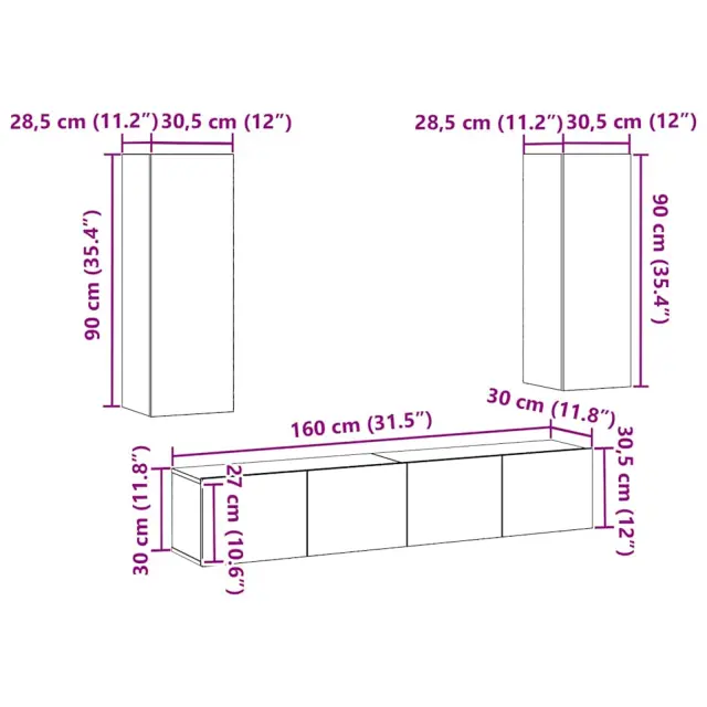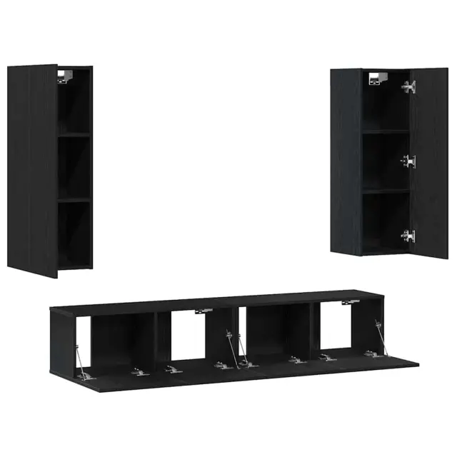 Ta komplet TV omar združuje stil in praktičnost, ponuja šik rešitev za tvojo dnevno sobo. Elegantne linije in gladka mat površina črnega hrasta ustvarjajo sodoben izgled, popoln za sodobne domove ali minimalistične prostore.