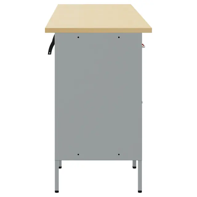 Ta industrijska delovna omara združuje praktičnost in stil, je super za delavnice, garaže ali domače pisarne. Narejena je iz trdnega jekla z teksturirano leseno zgornjo površino, kar nudi ogromno prostora za shranjevanje in organizacijo.