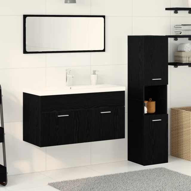 vidaXL 4-delni set kopalniškega pohištva črna hrastova inženirska lesa