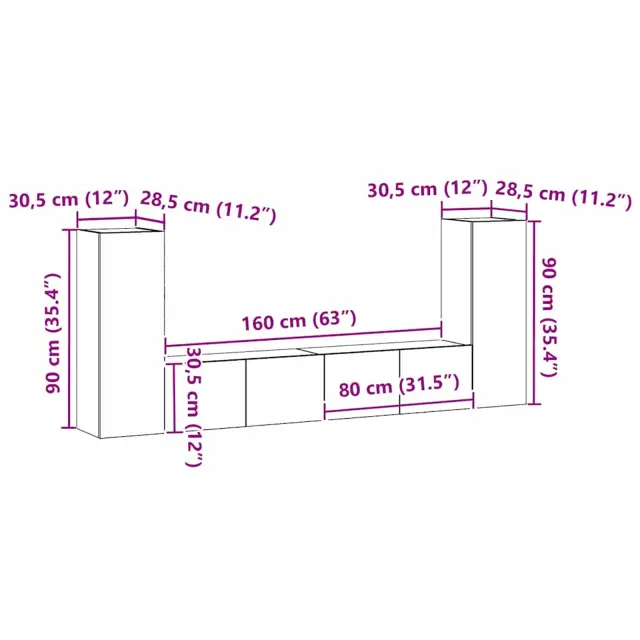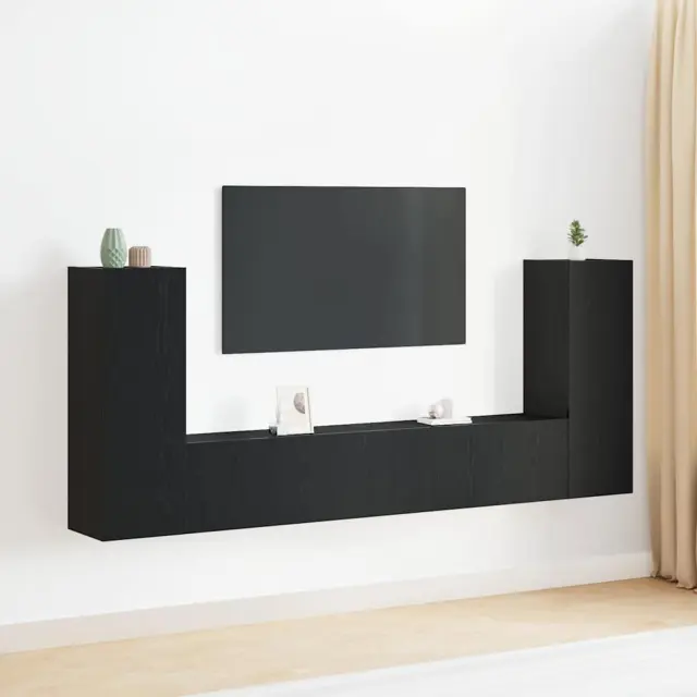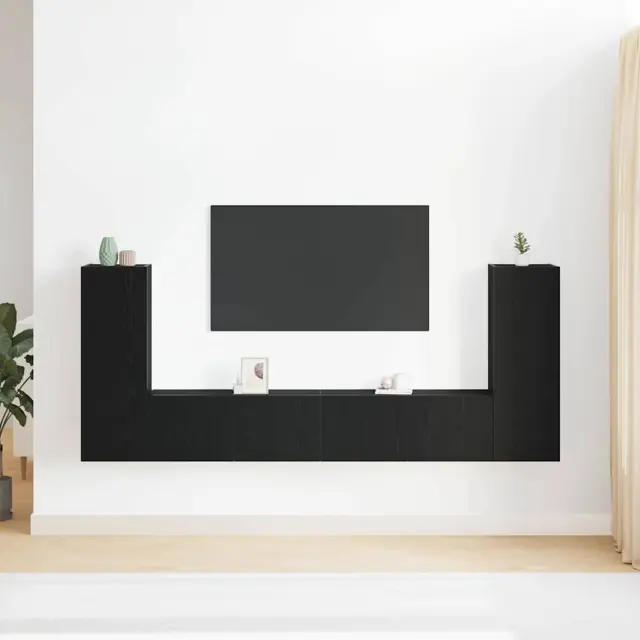 Oglejte si set TV omar vidaXL 4 kosa v črnem hrastu, zasnovan za moderne dnevne sobe.