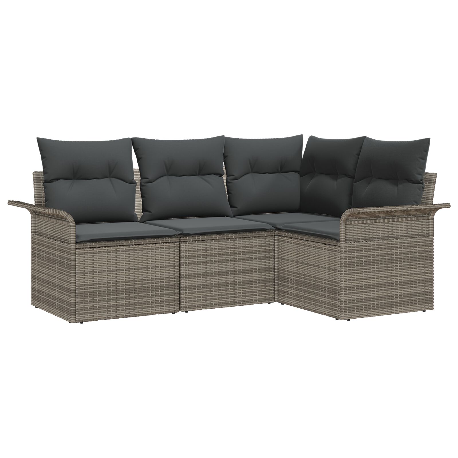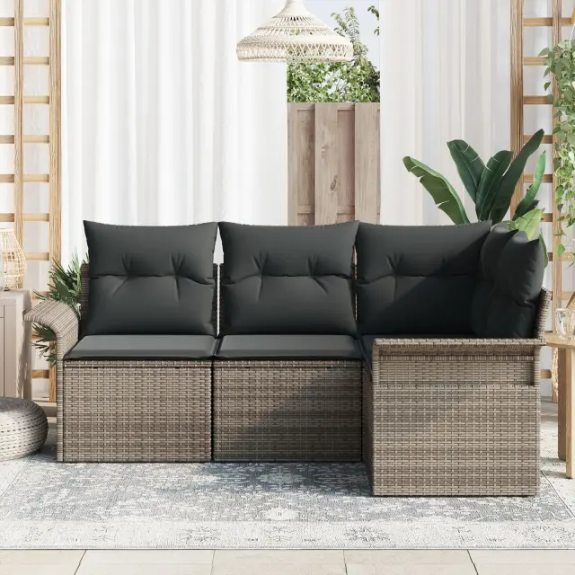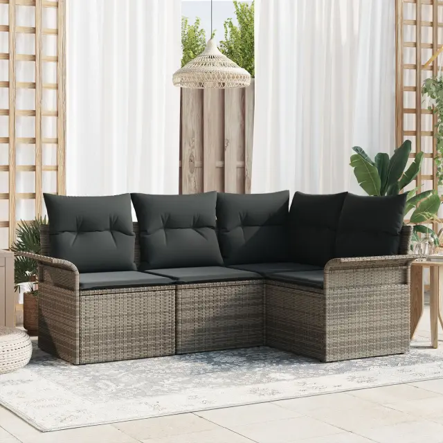 Ta vrtni kotni kavč set super kombinira moderni slog in udobje, idealen za zabavo na prostem. Sodobna zasnova in lepe sive blazine na vašem balkonu ali terasi nudijo prijetno vzdušje, ne glede na to, ali se sproščate ali obedujete.