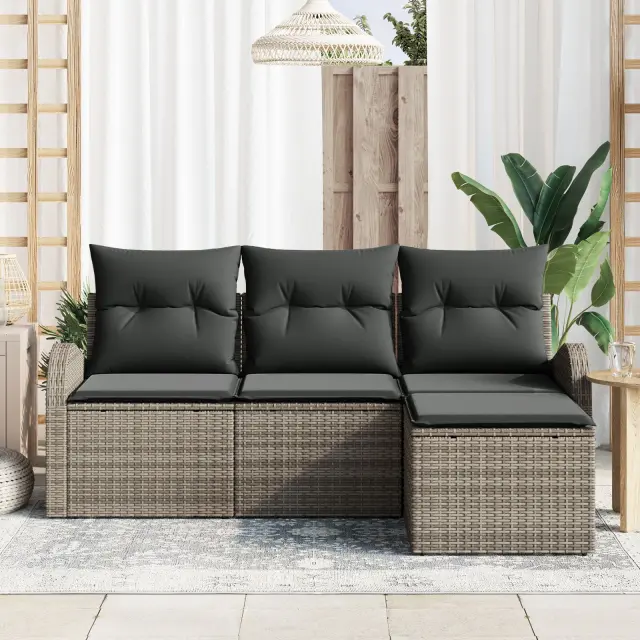 Ta zunanji kavč set je vse o udobju in slogu. Modularna zasnova ti omogoča, da ga postaviš, kot ti odgovarja, bodisi za zabavo ali preprosto sproščanje na balkonu.