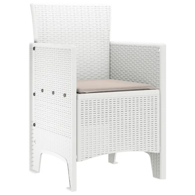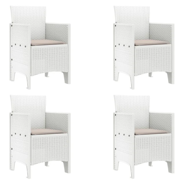 vidaXL 4 pcs beli poli ratan vrtni stoli z blazinami