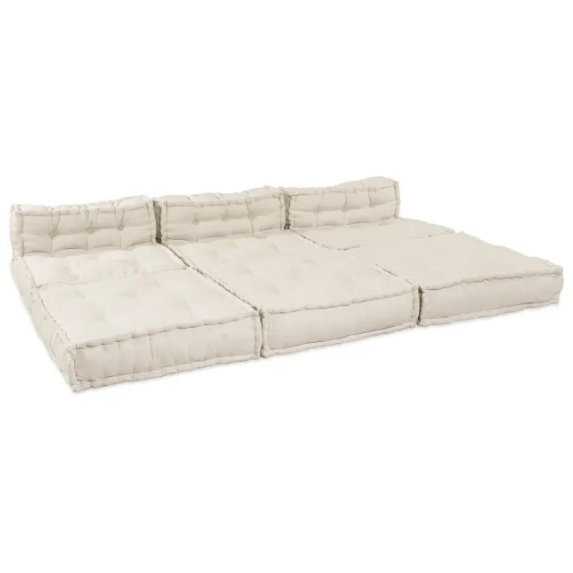 vidaXL 4-sedežni modularni pouf kavč, zložljiv, krema tkanina