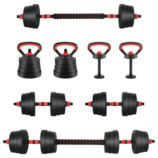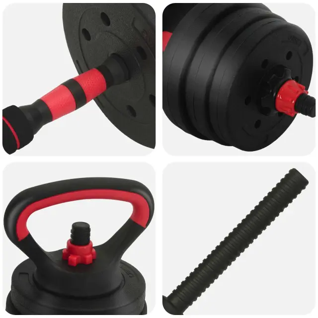 vidaXL 4-v-1 set dumbbelov Črna in rdeča 121 x 19,5 x 19,5 cm