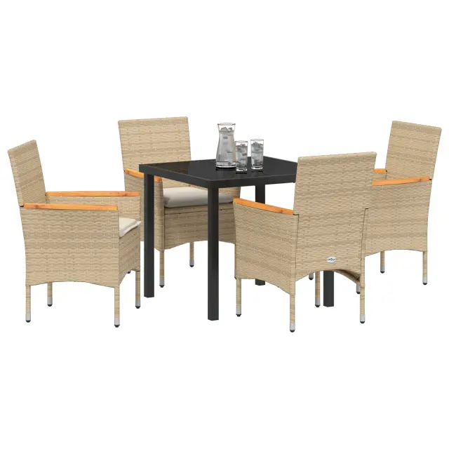 Ta 5-delna jedilna garnitura za vrt združuje slog in prakso, kar je super za obroke na prostem. Vključuje pravokotno mizo in štiri udobne stole, ki so popolni za osvežitev tvoje terase, balkona ali vrta.