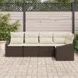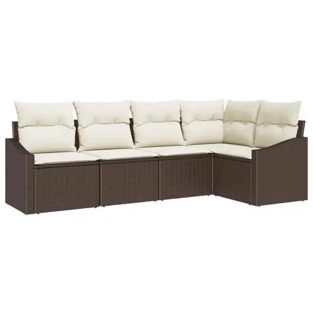 Ta fajn 5-delni vrtni kavč povezuje stil in udobje, ustvarja čudovit zunanji prostor za sprostitev in druženje. Narejen iz pletenega poli ratana in mehkega poliestra, odlično zgleda v vsakem vrtu ali terasi, kar ga dela popolen za zabave ali preprosto tihe trenutke.