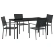 vidaXL 5-delna vrtna jedilna garnitura črna poli ratan