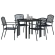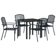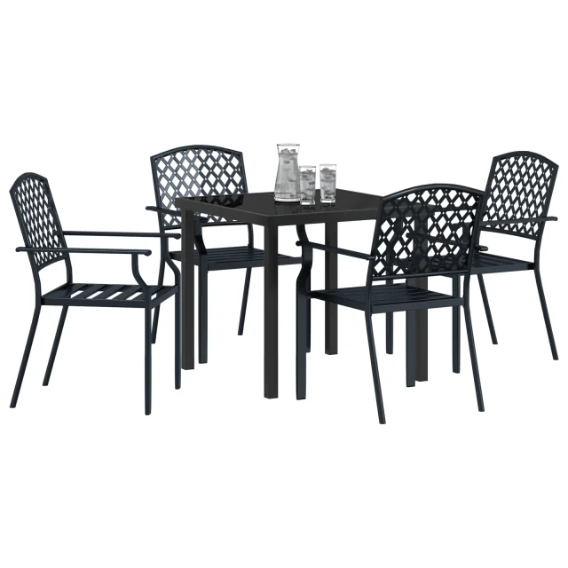 Ta 5-delni vrtni jedilni set je idealen za druženje s štirimi odraslimi. Obljublja udobno in stilsko izkušnjo na prostem. Moderna zasnova s sleek črnim prašno premazanim jeklenim okvirjem ga naredi opaznega na vašem patioju ali balkonu, hkrati pa zagotavlja funkcionalnost in vzdržljivost za vse tipe prireditev.