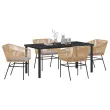 vidaXL 5-delna vrtna jedilna garnitura s blazinami rjava poli ratan