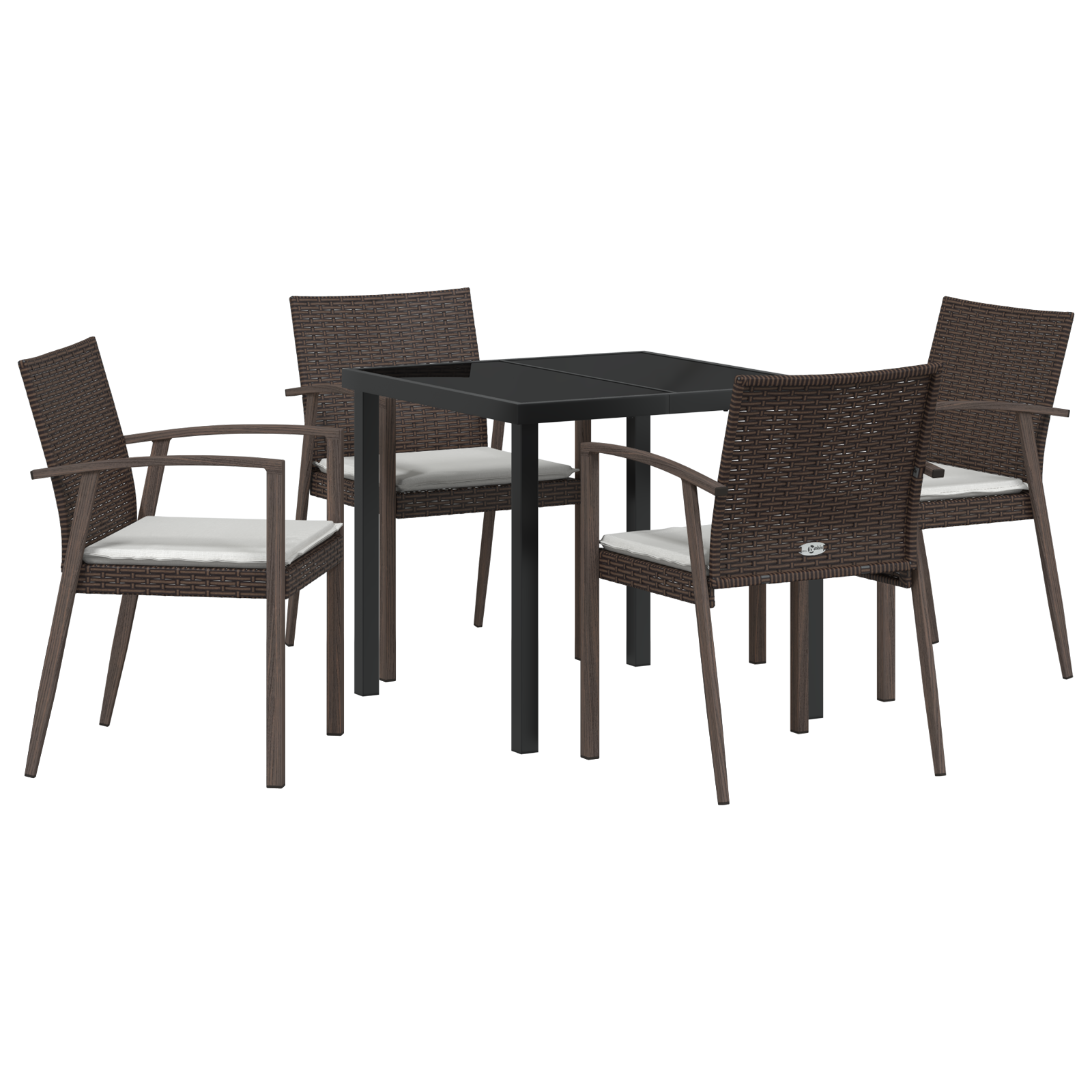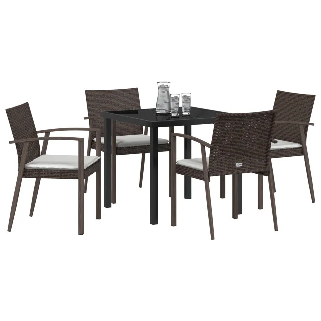 vidaXL 5-delna vrtna jedilna garnitura s blazinami rjava poli ratan