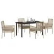 Ta vrtna jedilna garnitura ima sodoben slog, zasnovan za udobje in praktičnost, kar jo dela odličen dodatek za tvoje zunanje prostore. Garnitura vključuje štiri elegantne stole in prostorno pravokotno mizo, vse v chic bež in svetlo sivih tonih, ki lepo osvetlijo vsako teraso, vrt ali balkon.