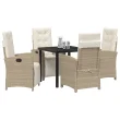 vidaXL 5-delna vrtna jedilna garnitura z blazinami bež poli ratan