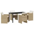 Ta vrtna jedilna garnitura naredi zunanje druženje prijetno. Format bež poly ratana in kremnih blazin dodaja odličen slog vsakemu prostoru. Uživajte v obrokih ali sprostitvi s prijatelji v popolnem slogu.