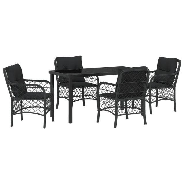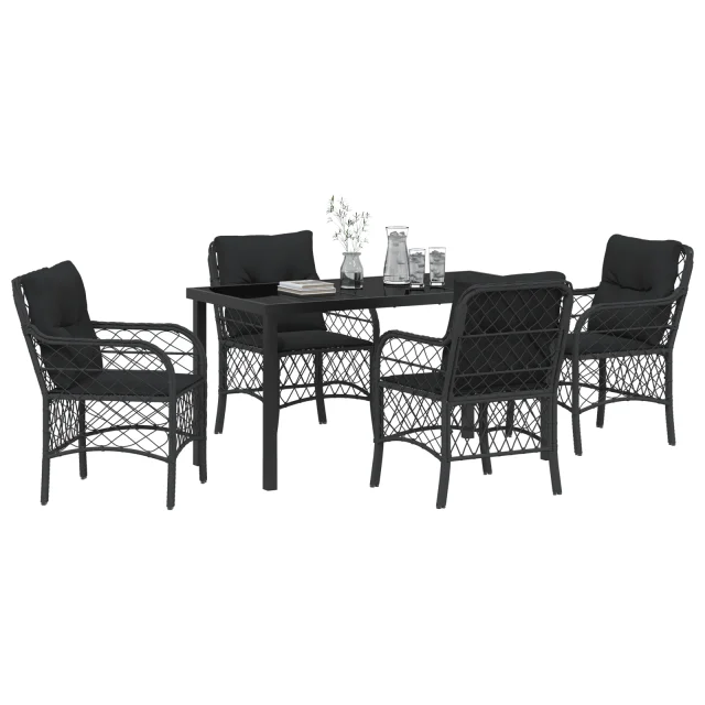 vidaXL vrtna jedilna garnitura je odlična izbira za sproščanje in druženje na prostem. Njen eleganten črn poli ratan videz daje stilsko vzdušje, ki dvigne videz vsakega vrta, terase ali balkona.