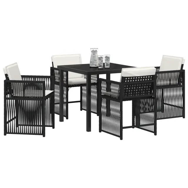 Ta vrtna jedilna garnitura je super kombinacija sloga in uporabnosti za zunanje obroke in ležerno lenarjenje. Ima štiri stilsko oblikovane stole in močno jedilno mizo, kar ni samo za hrano, ampak tudi za druženje s prijatelji in družino.