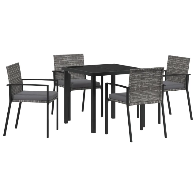 vidaXL 5-delna vrtna jedilna sestava siva poli ratan