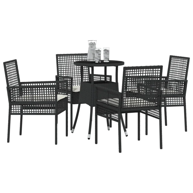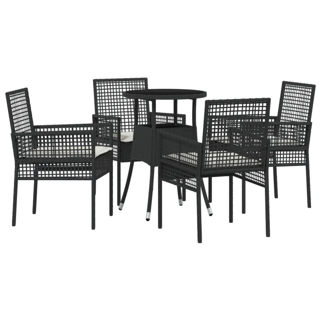vidaXL 5-delna vrtna jedilnica Črna Poli ratan