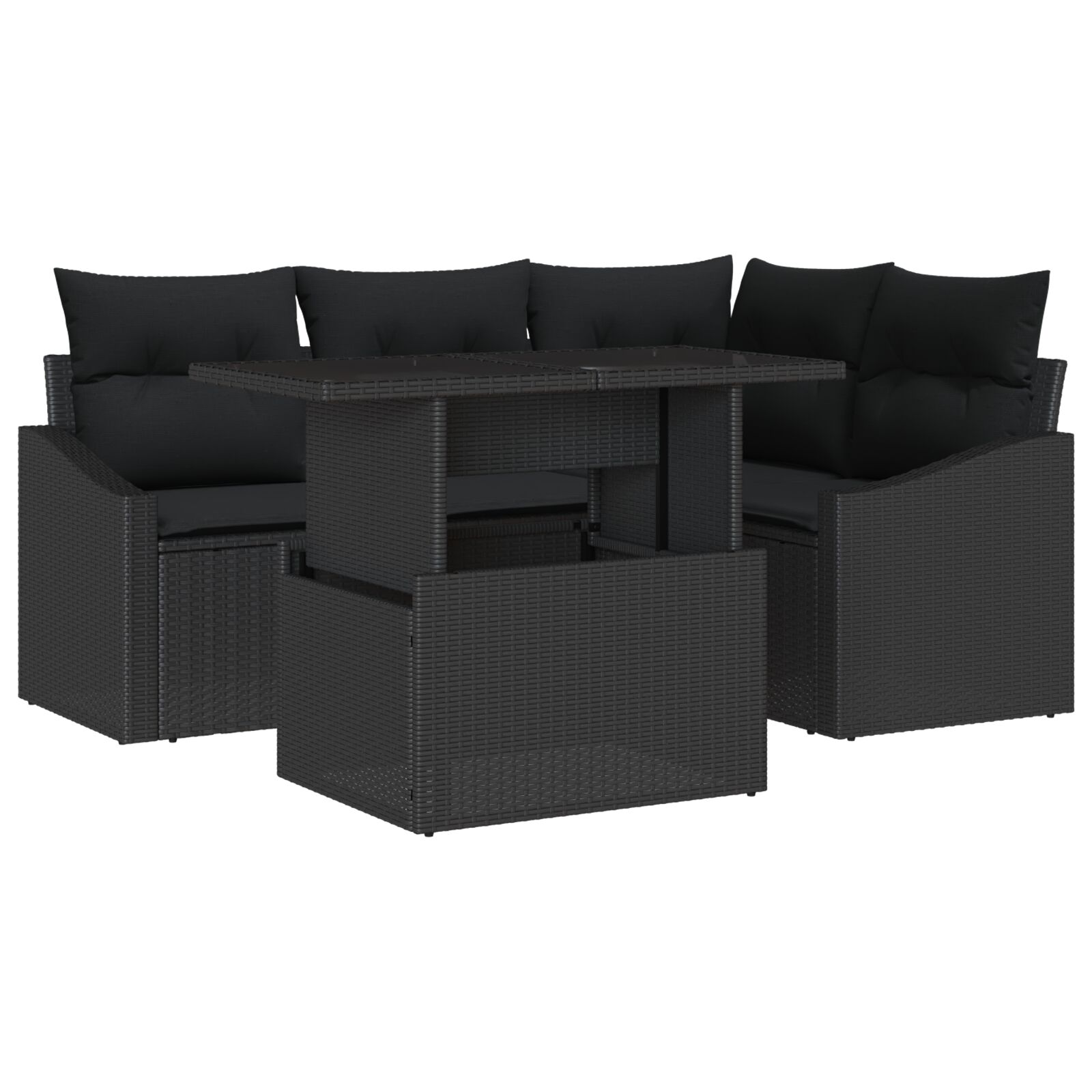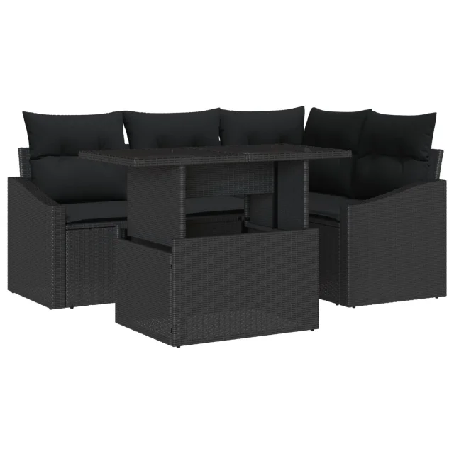 Ta vrtna sedežna garnitura združuje sodoben stil z udobjem in je super za zabave na prostem. S svojim šik črnim dizajnom in trdimi blazinami ustvarja prijetno vzdušje za zabave in sproščene trenutke na prostem.