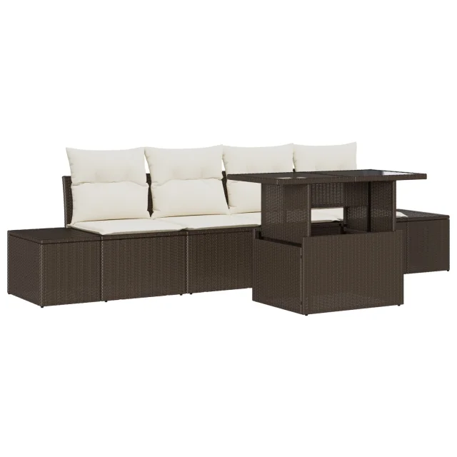 Ta 5-delna vrtna sedežna garnitura združuje stil in uporabnost. Narejena iz močnega poli ratana, se ponaša s čudovito rjavo in bež barvno shemo – idealna za sproščanje ali zabave. Njena sekcionalna zasnova zagotavlja udobje za družino in prijatelje, je super za lenarjenje ali zabave s pijačo.