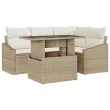 Ta vrtna sedežna garnitura združuje stil in udobje, zasnovana posebej za uživanje na prostem. Ima sodoben stil s soft bež in kremnimi blazinami, ki tvojo teraso ali balkon spremenijo v super udobno mesto, idealno za družinske srečanja in pogovore s prijatelji.