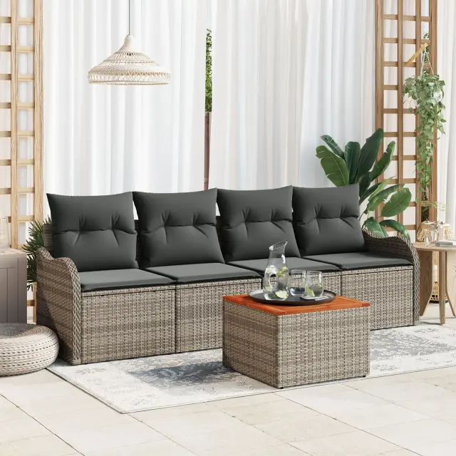 Ta vrtna sedežna garnitura je tu, da tvoj zunanji prostor spremeni v udoben in stiliziran kotiček. S svojimi elegantnimi linijami in mehko blazino je popolna kombinacija razkošja in praktičnosti za druženja na tvojem balkonu ali v vrtu.