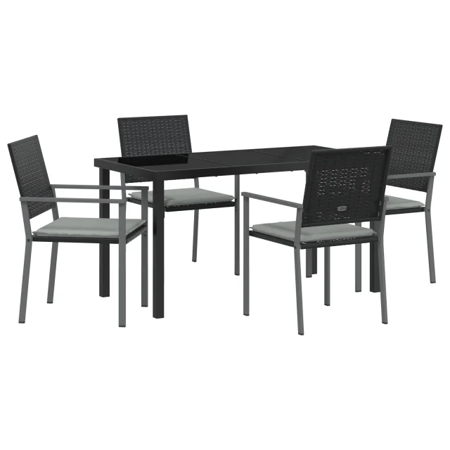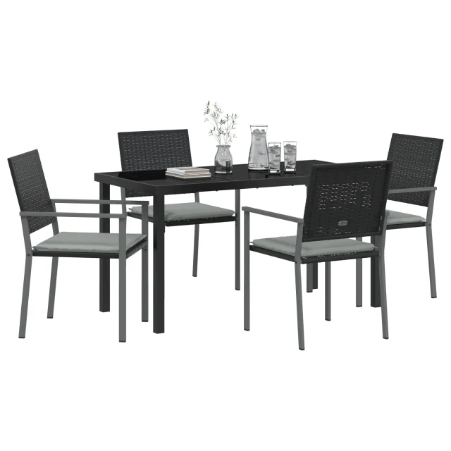 vidaXL 5-delna vrtnarska jedilna miza s blazinami črna poli ratan