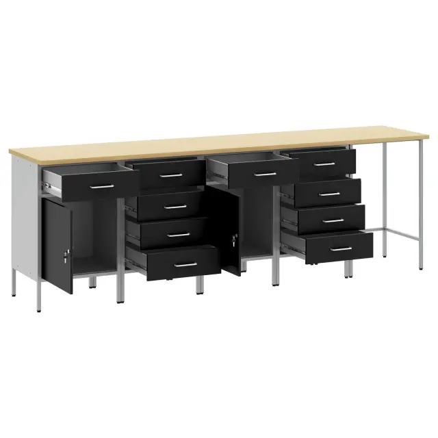 Ta industrijska delovna omara z predali je točno to, kar potrebuješ, da spet uporabiš svojo garažo ali delavnico. S svojim slick črno-sivim videzom in trdim jeklenim telesom, ne le da je trdna, ampak tudi izgleda super!