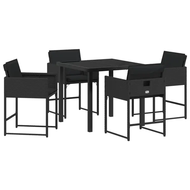 vidaXL 5-delni jedilni set za vrt z blazinami črn poli ratan
