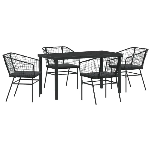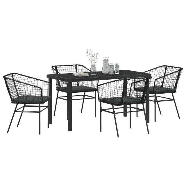 vidaXL 5-delni jedilni set za vrt z blazinami črna poli ratan