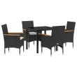 Ta 5-delni komplet zunanje jedilnice kombinira moderni stil s praktično zasnovo, kar izboljša vašo izkušnjo z obrokom na prostem. Vključuje kvadratno mizo in štiri udobne stole, ki ustvarijo prijetno vzdušje na vaši terasi, balkonu ali vrtu.