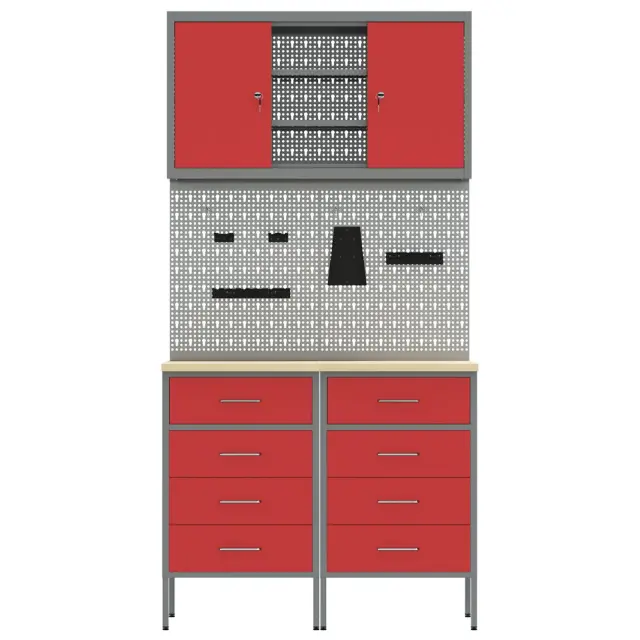 Ta industrijska delovna omara je prava izbira za stil in funkcionalnost. Je pameten dodatek za vsako garažo ali delavnico. Z njenim drznih rdeče-sivim dizajnom in leseno zgornjo stranjo nudi ogromno prostora za shranjevanje ter prinaša moderno noto.