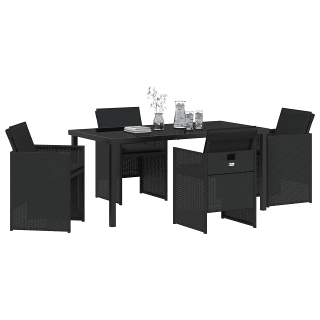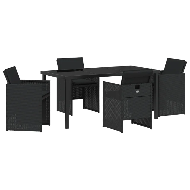 vidaXL 5-delni set jedilnice za vrt z blazinami črni poli ratan