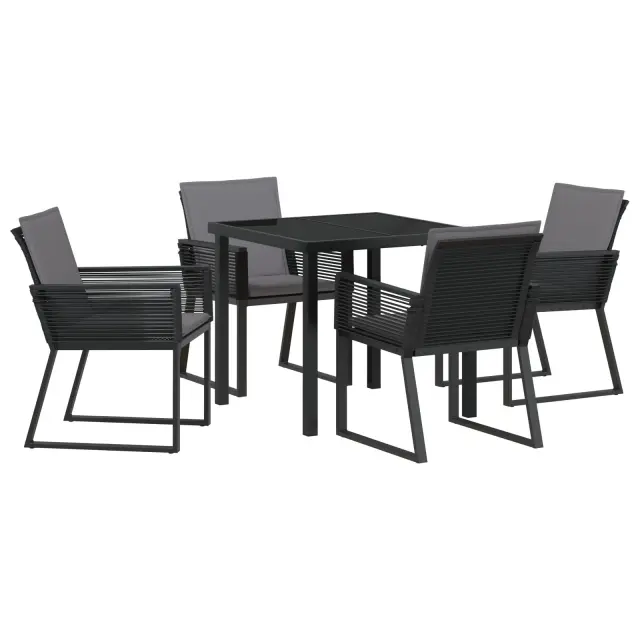 vidaXL 5-delni set vrtnarske jedilnice z blazinami črn poli ratan