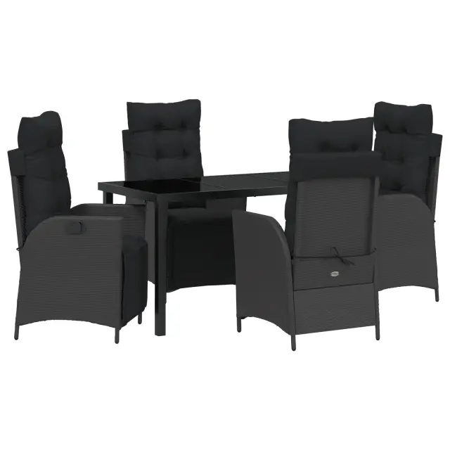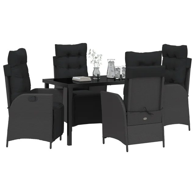 vidaXL 5-delni set vrtnarskih jedilnih stolov črna poli ratana