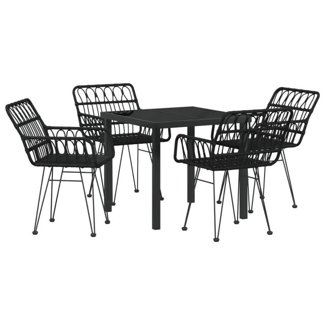 vidaXL 5-delni set vrtne jedilnice črn poli ratan