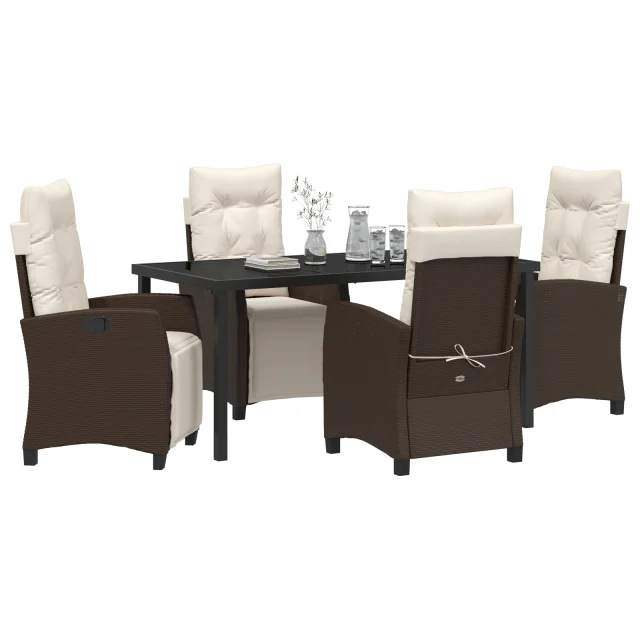 vidaXL 5-delni set vrtne jedilnice Rjava poli ratan