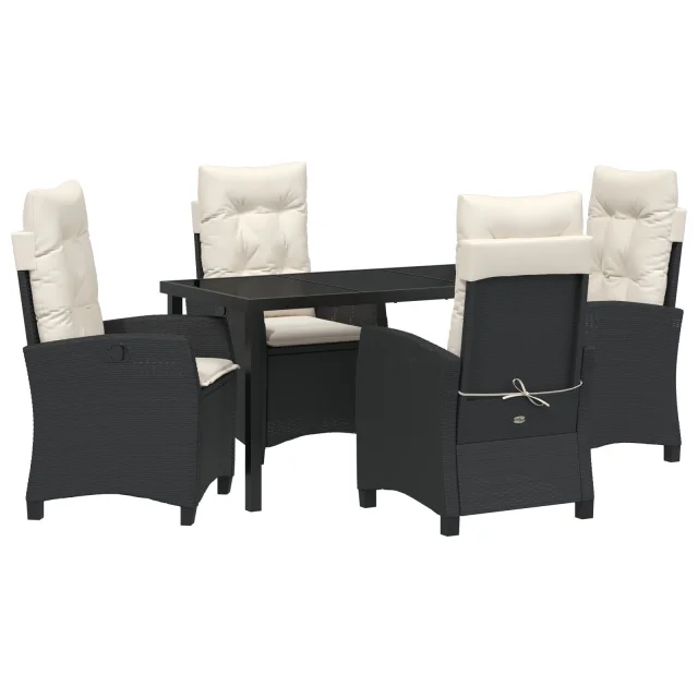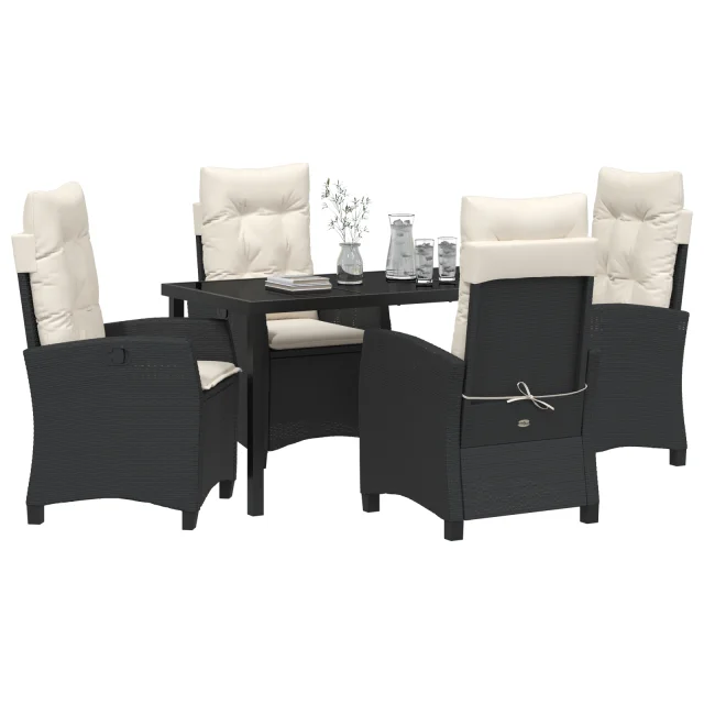 vidaXL 5-delni set vrtne jedilnice z blazinami črnega poly ratana