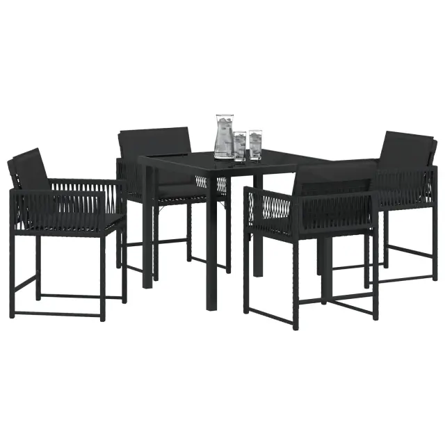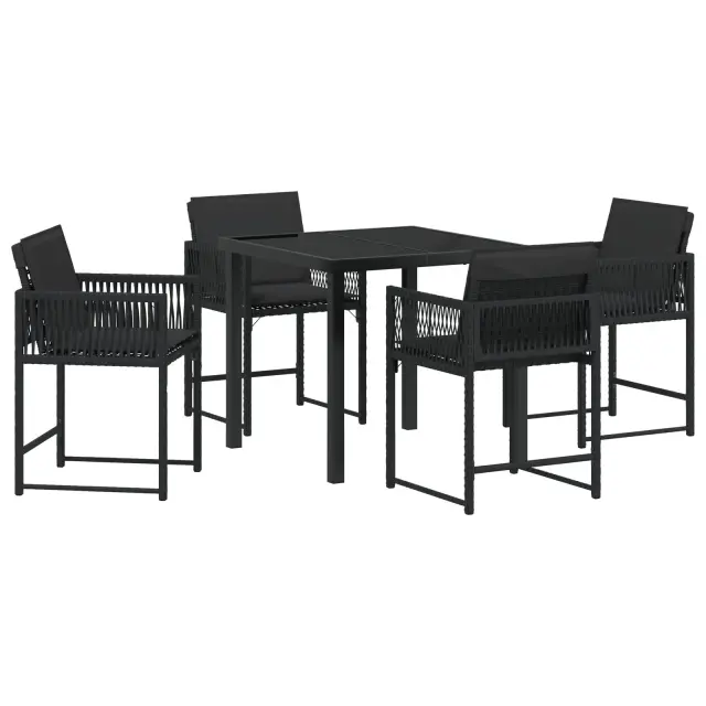 vidaXL 5 delni set vrtnega jedilnega pohištva z blazinami Črn Poli Ratan