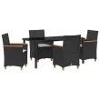 vidaXL 5-delni set vrtnega jedilnega pohištva z blazinami Črna Poli ratan