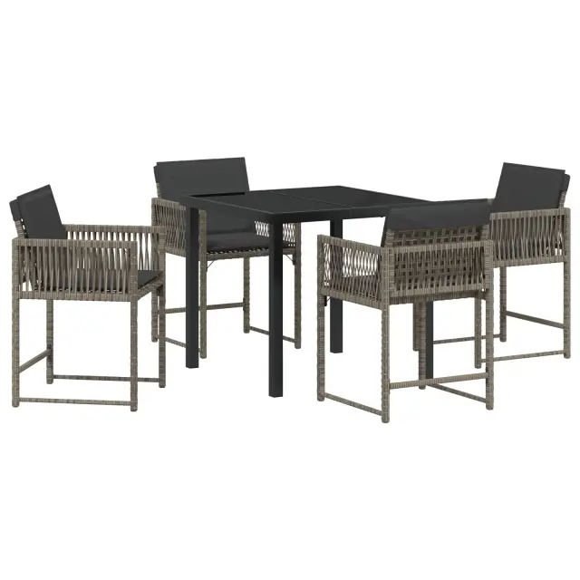 vidaXL 5-delni set vrtnega jedilnega pohištva z blazinami Siva Poli ratan