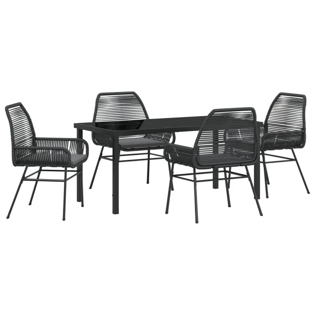 vidaXL 5-delni set vrtnih jedilnih stolov z blazinami Črn poly ratan