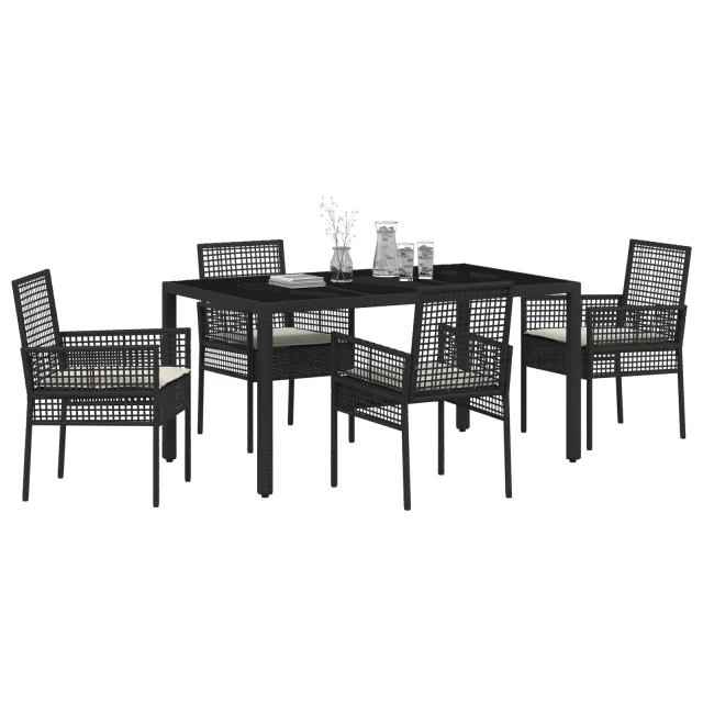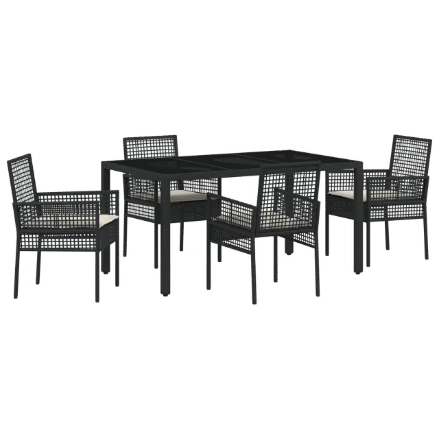 vidaXL 5-delni set za jedilnico na vrtu s blazinami črni poli ratan