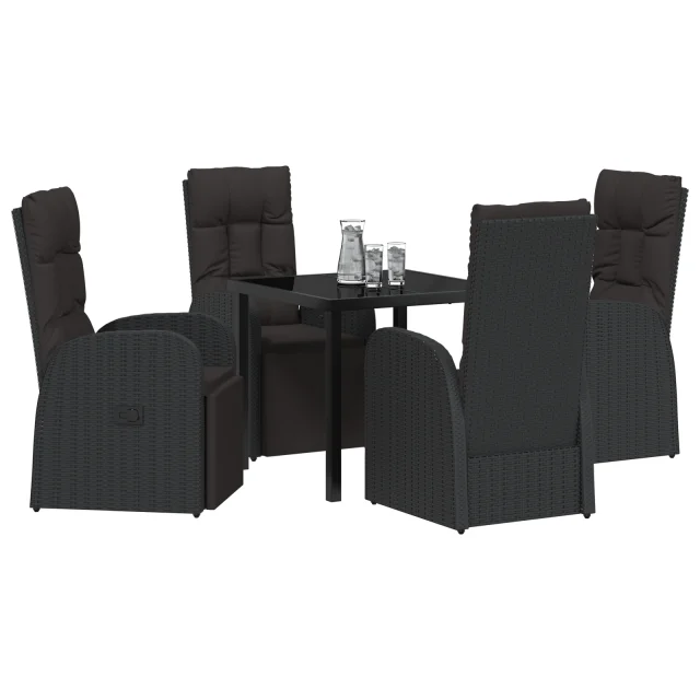vidaXL 5-delni set za vrtni jedilnico z blazinami črn poli ratan