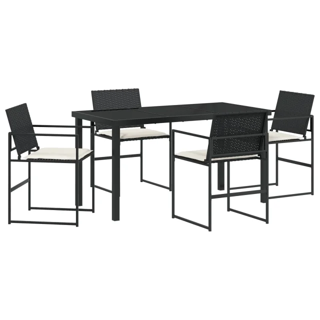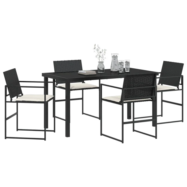 vidaXL 5-delni set za vrtno jedilnico z blazinami Črn Poli ratan
