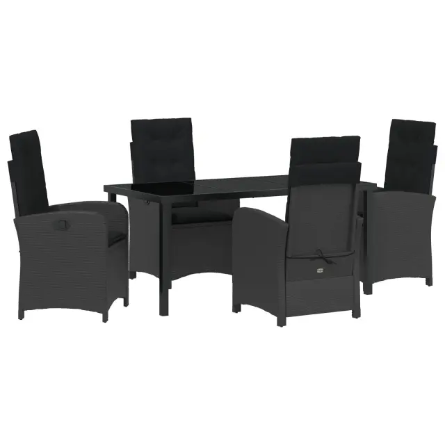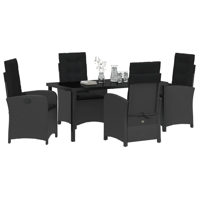 vidaXL 5-delni set za vrtno jedilnico z blazinami Črna Poli ratan