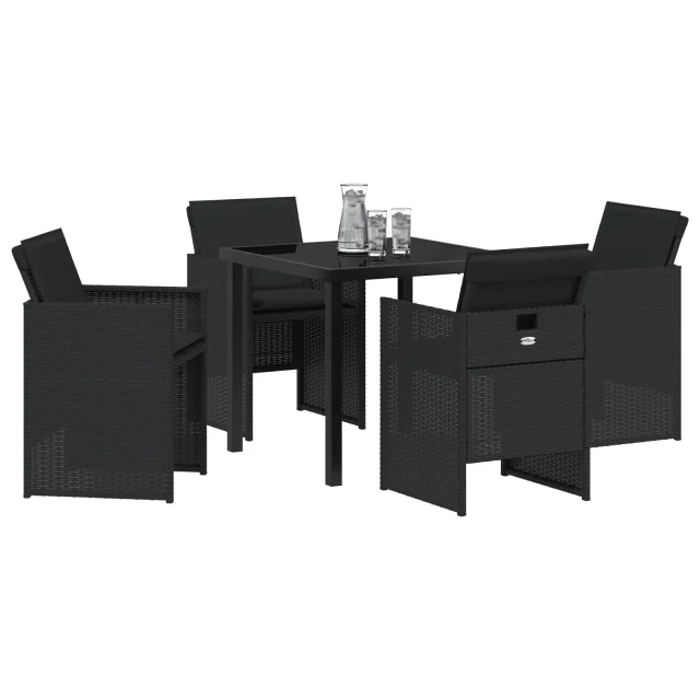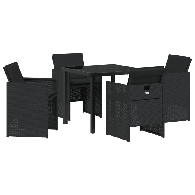 vidaXL 5 delni set za zunanje jedilnice z blazinami črna poli ratan